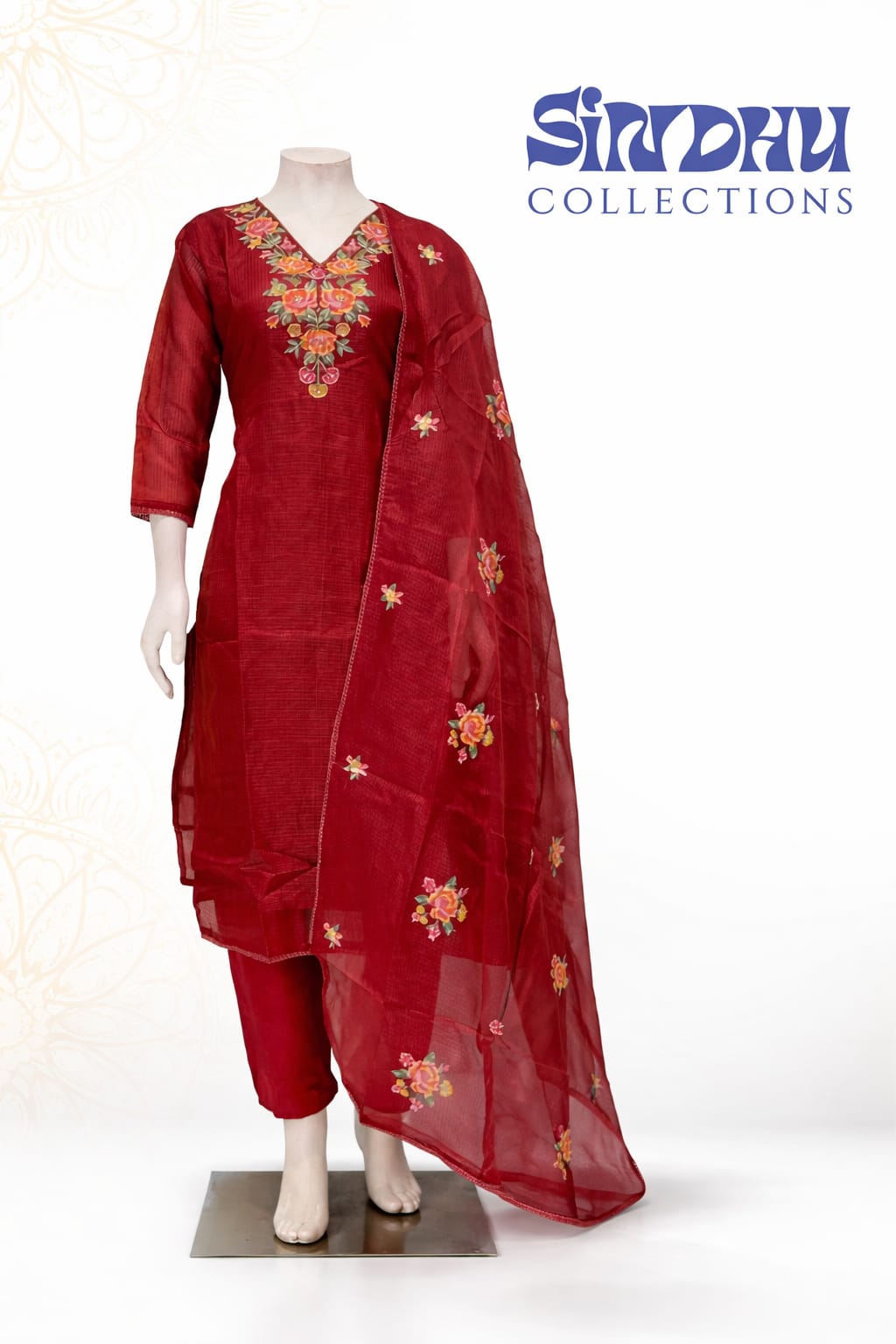 Crimson Floral Grace Cotton Set