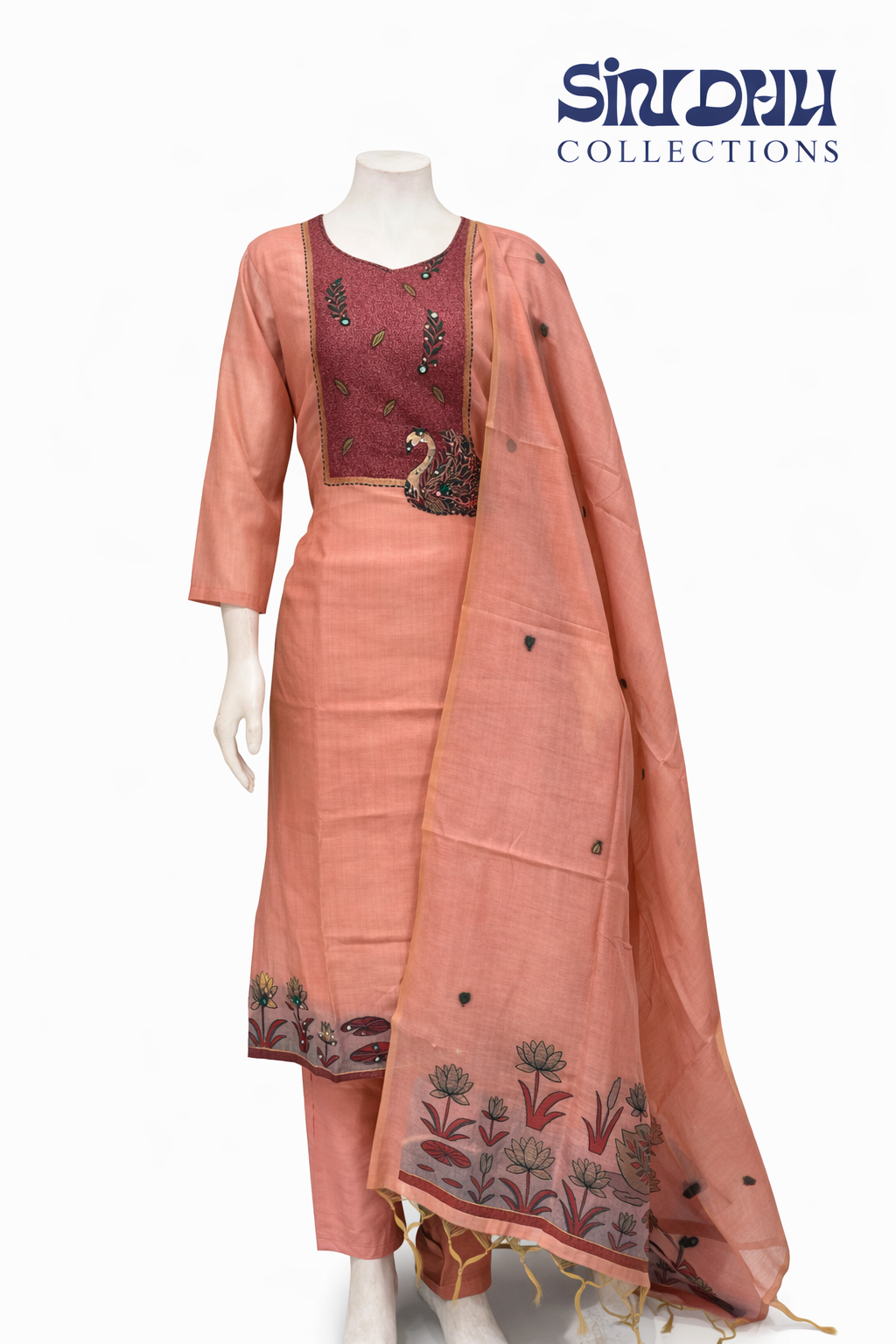 Peach colour jamdhani 3 piece set