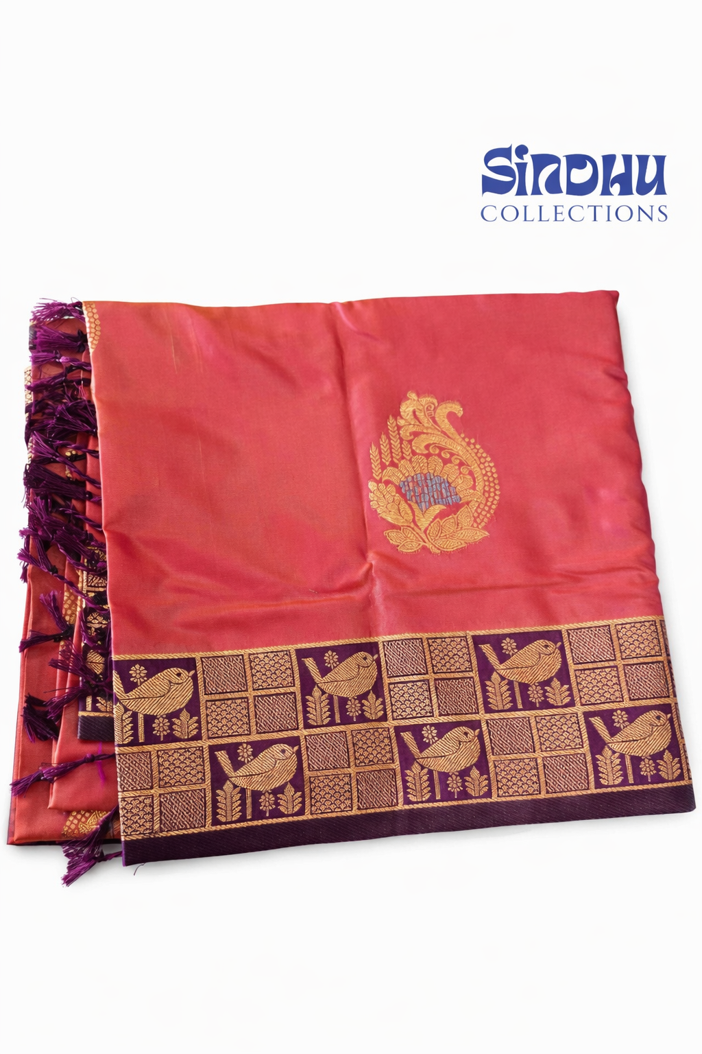 Sunset Peach Bird Border Saree